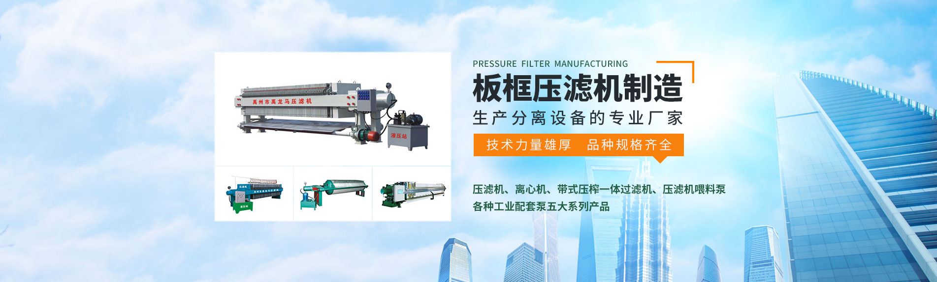 主要生產(chǎn)壓濾機(jī)、離心機(jī)、帶式壓榨一體過濾機(jī)、壓濾機(jī)喂料泵及各種工業(yè)配套泵五大系列產(chǎn)品。